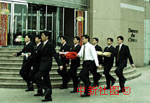 圖文:駐澳中資機(jī)構(gòu)中國(guó)銀行職員舉行升旗儀式演練 2000年12月19日 15:28 ![]() 駐澳中資機(jī)構(gòu)中國(guó)銀行職員為20日舉行升旗儀式演練.中新社傳真 趙健攝