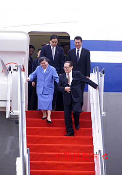 圖文:國(guó)家主席江澤民抵達(dá)澳門 2000年12月19日 17:37 ![]() 中國(guó)國(guó)家主席江澤民19日抵達(dá)澳門特區(qū)出席慶祝澳門回歸一周年慶典活動(dòng),中國(guó)邊防海警炮艇清晨在澳門海域戒備,作好安全保護(hù)工作。中新社傳真洪少葵攝 中新社澳門十二月十九日電(記者 陳立宇 趙健)中共中央總書記、國(guó)家主席、中央軍委主席江澤民乘坐的專機(jī)于今天十六點(diǎn)二十八分抵達(dá)澳門國(guó)際機(jī)場(chǎng),江澤民主席和夫人王冶坪在澳門特別行政區(qū)行政長(zhǎng)官何厚鏵的陪同下步下舷梯,踏上了澳門這塊剛剛回歸祖國(guó)一周年的土地。 T型的鮮紅地毯從舷梯一直鋪到江主席的座車前。歡迎人群列隊(duì)站立在地毯旁,“熱烈歡迎江澤民主席和夫人蒞臨澳門”的大型橫幅十分醒目。 一百五十多位小朋友以及一百一十多位澳門市民冒著細(xì)雨,揮舞著國(guó)旗、區(qū)旗和花束,歡迎江澤民主席一行的到來(lái)。 伴隨著澳門警察銀樂(lè)隊(duì)演奏的歡迎曲,澳門培正中學(xué)小學(xué)部十歲的女學(xué)生容韻琳和濠江中學(xué)小學(xué)部九歲的男學(xué)生岑啟彥,向江澤民主席和夫人王冶坪獻(xiàn)上了鮮花。滿面笑容的江澤民主席再次親吻了去年也曾向他獻(xiàn)花的容韻琳小姑娘,歡迎人群中響起熱烈的掌聲。 江澤民主席同前來(lái)迎接的全國(guó)政協(xié)副主席馬萬(wàn)祺、何厚鏵夫人劉渭楨以及澳門特別行政區(qū)主要官員曹其真、岑浩輝、陳麗敏、譚伯源、張國(guó)華、崔世安、歐文龍、張?jiān)、蔡美莉、何超明、白英偉、徐禮恒等一一握手。 中央人民政府駐澳門特別行政區(qū)聯(lián)絡(luò)辦公室主任王啟人、外交部駐澳門特別行政區(qū)特派員原燾、中國(guó)人民解放軍駐澳部隊(duì)司令員劉粵軍以及先期抵達(dá)的公安部副部長(zhǎng)田期玉、國(guó)務(wù)院港澳辦副主任陳佐洱、國(guó)務(wù)院新聞辦副主任李冰等也到機(jī)場(chǎng)迎接江主席一行。 江澤民主席的主要陪同人員:國(guó)務(wù)院副總理錢其琛夫婦、中國(guó)人民解放軍總政治部主任于永波上將、中共中央辦公廳主任王剛、國(guó)務(wù)院港澳辦主任廖暉等人同機(jī)抵達(dá)。 江澤民此行將在澳門停留至二十一日,參加一系列慶祝澳門回歸祖國(guó)一周年的活動(dòng)。 |