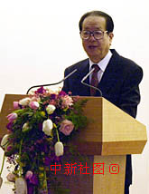 國務院副總理錢其琛十九日在澳門特區(qū)成立一周年慶祝晚宴上發(fā)表講話。中新社傳真 宗金柱 攝