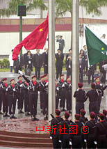 中新社澳門十二月二十日電(記者趙健) 今晨,澳門的天空飄著蒙蒙細雨,澳門的民眾卻絲毫不減慶;貧w周年的熱情,天剛蒙蒙亮,就扶老攜幼,紛紛趕往金蓮花廣場,觀看慶祝澳門特別行政區(qū)成立一周年升旗儀式。 今天的金蓮花廣場充滿莊重神圣的氣氛,中央政府贈送給澳門特別行政區(qū)的雕塑“盛世蓮花”顯得金碧輝煌。這尊澳門回歸時中央政府贈送給澳門特區(qū)政府的賀禮,由花莖、花瓣、花蕊組成,象徵著澳門永遠繁榮昌盛。今年國慶前夕,為了在這里舉行國慶升旗儀式、澳門特區(qū)政府將安放“盛世蓮花”的場地開辟為金蓮花廣場,成為澳門最重要的升旗儀式之地。廣場四周黃色和紅色的菊花爭奇斗艷,身著制服的澳門儀仗隊、特警和澳門警察局銀樂隊一早就整齊地列隊等候在這里,等候著升旗的莊嚴時刻。 全國政協(xié)副主席馬萬祺、澳門特別行政區(qū)行政長官何厚鏵及夫人、中央人民政府駐澳門特別行政區(qū)聯(lián)絡(luò)辦公室主任王啟人、外交部駐澳門特別行政區(qū)特派員原燾、中國人民解放軍駐澳門部隊司令員劉粵軍和政委賀賢書、澳門特別行政區(qū)主要官員、澳門的全國人大代表和全國政協(xié)委員以及澳門各界知名人士、社團代表三百多人,也相繼來到這里,參加升旗儀式。 上午八時整,在雄壯的國歌聲中,鮮艷的五星紅旗和綠色的澳門特區(qū)區(qū)旗在金蓮花廣場冉冉升起,為澳門迎來了嶄新的一天。 帶著兩歲的女兒和五歲的兒子前來觀看升旗儀式的胡先生夫婦向記者表示,澳門歷來就是中國的領(lǐng)土,應(yīng)該讓孩子自小就增加對國家和澳門的認識。看著國旗和區(qū)旗在澳門的土地上升起,心中感想很多,特別覺得驕傲和自豪。胡先生夫婦的話代表了眾多澳門民眾的心聲,當升旗儀式結(jié)束后,觀禮的民眾仍不舍離去,不少人在飄揚的五星紅旗和金色的蓮花前攝影,希望永遠銘記住這難忘的時刻。 |