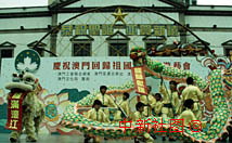 圖片:澳門(mén)議事亭前地舉行舞獅慶賀澳回歸一周年 2000年12月20日 19:05 ![]() 市民澳門(mén)議事亭前地20日下午舉行民間慶;顒(dòng),市民舞獅慶賀澳門(mén)回歸祖國(guó)一周年。中新社傳真 趙健 攝
