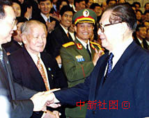 圖文:江澤民接見中央政府駐澳機(jī)構(gòu)、中資企業(yè)負(fù)責(zé)人和駐澳部隊(duì)校官以上軍官 2000年12月21日 12:07 ![]() 國家主席江澤民21日上午在澳門接見中央駐澳機(jī)構(gòu)、中資企業(yè)負(fù)責(zé)人和駐澳部隊(duì)軍官。中新社傳真 董會(huì)峰 攝 ![]() 中共中央總書記、國家主席、中央軍委主席江澤民21日上午在澳門接見駐澳部隊(duì)校級(jí)以上軍官,并合影留念。中新社傳真 董會(huì)峰 攝