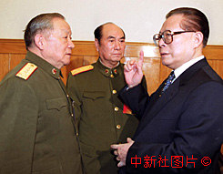 江澤民在政協(xié)閉幕大會與遲浩田、張萬年交談 2000年3月12日 09:19 ![]()