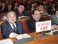 出席十五日在北京舉行的九屆全國人大三次會議閉幕大會的全國人大澳門代表唐星樵(左)等按表決器,通過政府工作報告。作者:李剛