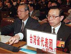 臺灣省代表張水均、和香港代表袁武在全國人大閉幕會上