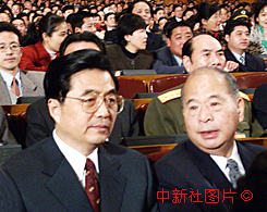 胡錦濤與尉健行出席九屆全國(guó)人大三次會(huì)議預(yù)備會(huì)議 2000年3月5日 11:55 ![]()