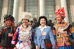 萬(wàn)紹芬和少數(shù)民族代表出席人大會(huì)議 2000年3月6日 08:53 ![]()