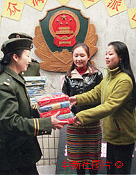 藝術(shù)家慰問保衛(wèi)兩會的公安干警 2000年3月7日 08:52 ![]()