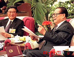江澤民主席到全國(guó)人大上海代表團(tuán)參加討論 2000年3月8日 08:32 ![]()