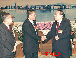 江澤民與澳門特區(qū)行政長官何厚鏵握手交談 2000年3月9日 08:49 ![]()