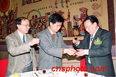 新世紀(jì)新聞年會18日在北京人民大會堂舉行,近百家新聞單位的負(fù)責(zé)人出席年會。圖為中新社總編輯郭招金(中)與新聞界的同行互致問候。中新社圖 鄭瑞德 攝