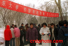 山東大學(xué)開(kāi)展“校園拒絕邪教”萬(wàn)人簽名活動(dòng) 2001年2月21日 08:41 ![]()