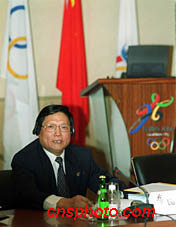 北京奧申委主席、北京市市長劉淇二十一日在北京舉行的迎接國際奧委會評估團(tuán)會議上致詞。中新社記者 李剛 攝