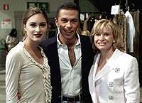 圖文:布什侄女上T臺(tái) 米蘭時(shí)裝展成亮點(diǎn) 2001年3月1日 16:39 勞倫(左)、設(shè)計(jì)師馬修羅和她的母親(路透社) 中新網(wǎng)米蘭3月1日消息:米蘭時(shí)裝周進(jìn)行到星期三時(shí),人們發(fā)現(xiàn)了一位T臺(tái)新秀——?jiǎng)趥悺げ际?Lauren Bush)。16歲的她可是美國總統(tǒng)小布什的侄女哦。 微笑中透出一點(diǎn)點(diǎn)緊張,勞倫在蓋依·馬修羅(Gai Mattiolo)的2001/2002秋冬時(shí)裝專場(chǎng)上展示了略有些性感的外衣。馬修羅是一位以設(shè)計(jì)性感晚禮服而知名的羅馬設(shè)計(jì)師。 有媒體認(rèn)為,勞倫在臺(tái)上略顯稚嫩,還缺乏自如的專業(yè)風(fēng)范。 勞倫是美國總統(tǒng)布什的兄弟尼爾的女兒,而且已經(jīng)是一位攝影模特兒。 “我找她來為我的設(shè)計(jì)作展示,因?yàn)槲矣X得這個(gè)年輕姑娘有一種青春的活力,”馬修羅在勞倫上臺(tái)之前對(duì)媒體記者說。 勞倫的緊張情緒在這場(chǎng)時(shí)裝展進(jìn)入尾聲時(shí)再也看不到了,馬修羅出來向觀眾們致意,旁邊伴隨著勞倫。她笑得很燦爛。而她的媽媽,則一直在為她鼓掌。 |