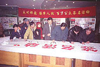北京供電局職工參加“反對(duì)邪教、保障人權(quán)”百萬(wàn)公眾簽名活動(dòng)。