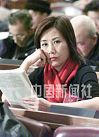 香港著名藝員汪明荃出席全國政協(xié)九屆四次會(huì)議,認(rèn)真聽取大會(huì)發(fā)言。中新社記者 滿會(huì)喬 攝
