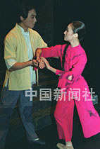 中央芭蕾舞團(tuán)在三.八婦女節(jié)來臨之際,為北京的觀眾演出一九六四年創(chuàng)作的大型芭蕾舞劇《紅色娘子軍》,圖為常青指路一場戲。中新社記者 張勤 攝