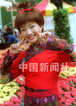 藝員岑寶兒12日穿著民族服裝出席香港花卉展覽「春花樂韻耀香江」攝影比賽當模特,造型活潑可愛。中新社傳真 鄧慶樂 攝