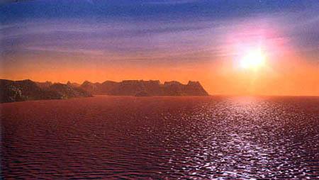 圖文:科普大片《宇宙與人》全文解說(shuō)詞 2001年3月27日 11:03 ![]() 在地球的某個(gè)時(shí)期,海洋中充滿了被氧化的鐵銹,海水呈現(xiàn)出紅色 物質(zhì)的宇宙能夠演化出生命,目前我們惟一所知道的就是我們自己的太陽(yáng)系,但準(zhǔn)確地說(shuō),生命很吝嗇地只選擇了它的第3顆行星———地球,生命在這顆星球上誕生并且改造這顆星球長(zhǎng)達(dá)近40億年。從生態(tài)上看,地球的美麗是獨(dú)一無(wú)二的,然而今天的地球因?yàn)橛辛巳祟悾筒粌H是生態(tài)星球,同時(shí)還是一顆文明星球。 地球上惟一直立行走的智能生物———人類,今天已經(jīng)非常輕松地生活在這顆行星上,但是,從古老文明走到現(xiàn)代文明,人類付出了巨大的代價(jià)。而二者之間的跨越的關(guān)鍵,恰恰要取決于人類認(rèn)識(shí)宇宙的深度。 望遠(yuǎn)鏡的原始創(chuàng)意 盡管有很多史前文明都顯示了人類認(rèn)知宇宙的興趣,但在中國(guó)四川西部三星堆發(fā)現(xiàn)的3000多年前的青銅器,大概是表現(xiàn)得最執(zhí)著的了。這是一個(gè)向往飛翔的古老集體,鳥(niǎo)是他們普遍的偶像,鳥(niǎo)的眼睛被深深地崇拜著,而他們自己的眼睛,更被夸張地塑造了。這可能是人類最早的期望通過(guò)眼睛這個(gè)器官的延長(zhǎng),而求索宇宙的向往,這也許是望遠(yuǎn)鏡的最原始的創(chuàng)意。 事實(shí)是,這種愿望終于在400多年前得到了實(shí)現(xiàn)。人類的眼睛真的延長(zhǎng)了,望遠(yuǎn)鏡給人類文明所起的作用,可以說(shuō)超過(guò)一切其它單件的工具,因?yàn)闆](méi)有它,就沒(méi)有可能了解天體的基本運(yùn)動(dòng),也就沒(méi)有對(duì)神的勇敢的否定,就沒(méi)有可能在天體的觀察中得到的牛頓定律,也就沒(méi)有以這個(gè)定律為基礎(chǔ)的現(xiàn)代工業(yè)社會(huì)。人類在400多年前通過(guò)望遠(yuǎn)鏡在宇宙中獲得了駕馭物質(zhì)的法則,于是,我們的生活就從此日新月異。 太陽(yáng)是我們擁有的一顆恒星。今天,人類對(duì)宇宙已經(jīng)看得更遠(yuǎn),理解得更深刻,這種理解使我們已經(jīng)能夠認(rèn)識(shí)宇宙作為一個(gè)整體的物質(zhì)運(yùn)動(dòng),并且更加明確地認(rèn)識(shí)到我們是物質(zhì)運(yùn)動(dòng)的結(jié)果,而宇宙中的星辰,就是全部物質(zhì)運(yùn)動(dòng)的最重要的動(dòng)力。 我們把自己擁有的一顆恒星叫做太陽(yáng),它的光輝對(duì)地球的生命是最根本的,陽(yáng)光在地球表面已經(jīng)掠過(guò)了40多億年,今天的生態(tài)就是純粹陽(yáng)光的塑造,這種塑造使得地球擁有了一個(gè)長(zhǎng)達(dá)40億年的生命鏈,這個(gè)鏈條其實(shí)就是固體的陽(yáng)光,因?yàn)樯谋举|(zhì)的含義就是把光能變成物質(zhì)的新陳代謝。 現(xiàn)在,我們可以精確地知道,這顆價(jià)值非凡的發(fā)光體非常的巨大,它的直徑相當(dāng)于110個(gè)地球,它的表面是6000度的高溫,經(jīng)過(guò)一億五千萬(wàn)公里空間的傳輸,地球只得到它的光輝的5億分之一,但這已經(jīng)足夠了。 它的質(zhì)量相當(dāng)于33萬(wàn)個(gè)地球,但盡管這么大,如果全部是煤,發(fā)出同樣的光和熱只能燒幾千年。然而,它穩(wěn)定地?zé)?0億年,是什么東西這么經(jīng)燒呢? 人類的燃燒概念是火,用一堆樹(shù)枝燃燒幾個(gè)小時(shí),這就是我們的獲取能量的概念。這個(gè)基本的方式一直主導(dǎo)著人類的文明,但這種燃燒根本沒(méi)有使用宇宙中真正的能量寶庫(kù)———原子核,在本質(zhì)上,木頭的燃燒只是原子們互換位置放出一些化學(xué)能,燃燒后,原子核的質(zhì)量一點(diǎn)沒(méi)有減少。 而太陽(yáng)的燃燒和篝火原理完全不同,它在讓原子核燃燒。愛(ài)因斯坦用著名的質(zhì)能轉(zhuǎn)換的公式計(jì)算出,核能量能達(dá)到普通化學(xué)能量的2000萬(wàn)倍。宇宙中最高效的核能是氫聚變成氦,也就是4個(gè)氫原子聚變成一個(gè)氦原子,這個(gè)過(guò)程可以有千分之七的物質(zhì)轉(zhuǎn)換成能量,雖然只有千分之七,但物質(zhì)的能量太大,如果把1000克氫原子中千分之七的物質(zhì)轉(zhuǎn)換成能量,就相當(dāng)于4000噸石油和6000噸煤。 在一節(jié)只能燒幾分鐘的樹(shù)枝中所蘊(yùn)藏的核能,足以把一盞100瓦的燈泡點(diǎn)亮100萬(wàn)年。 太陽(yáng)就是一個(gè)奢侈的使用核能的天體。 宇宙的物質(zhì)結(jié)構(gòu) 那么,怎樣才能燃燒原子核呢?這就要看我們宇宙的物質(zhì)結(jié)構(gòu)了。物質(zhì)本身沒(méi)有行為,而物質(zhì)中蘊(yùn)含了4種力卻決定了宇宙的一切。其中最強(qiáng)的是強(qiáng)力,它存在于強(qiáng)子之中,核能就是靠它產(chǎn)生的,但這種力只在原子核的直徑范圍起作用,所以,產(chǎn)生核能就必須讓它們相互接觸,也就是核聚變。 核聚變必須有中子,而另一種弱力,能使質(zhì)子衰變成中子,并釋放出射線,這個(gè)力是核聚變不可缺少的。 而能否使核聚變發(fā)生,關(guān)鍵卻在于電磁力,它比強(qiáng)力弱100多倍,不過(guò)它延伸得比強(qiáng)力遠(yuǎn),所以一般情況下強(qiáng)力被電磁力封閉著,如果突破不了電磁力,就不會(huì)有核聚變。其實(shí)電磁力是一種非常溫和而美好的力,它天生就有正和負(fù),永遠(yuǎn)不會(huì)過(guò)分,所謂陰陽(yáng)生萬(wàn)物,因此它就構(gòu)成了宇宙中