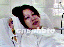 中國失蹤飛行員王偉的妻子四月六日在病床上等待著丈夫的歸來。中新社圖