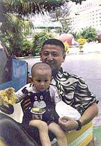 中國飛行員王偉與兒子(資料圖片)