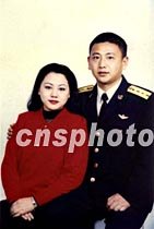 中國(guó)飛行員王偉與妻子(資料圖片)