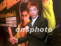 歌星許志安9日在香港出席其「借你耳朵聽許志安演唱會」記者會,作勢放彩炮,喻意演唱會每場爆滿。中新社傳真 鄧慶樂 攝