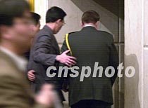 美國駐華使館官員席樂高九日晚八時(shí)在?谖娜A酒店出席海南省外事辦公室舉行的新聞發(fā)布會(huì)后,在中方人員的陪同下走后門離去,避免被記者圍追提問。中新社記者 賈國榮 攝