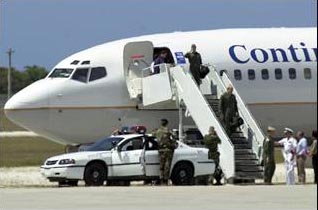 圖文:24名美軍機(jī)組成員抵達(dá)關(guān)島 2001年4月12日 13:00 ![]() 今天獲準(zhǔn)回國(guó)的美軍機(jī)組成員下飛機(jī)后與關(guān)島駐扎的美軍見(jiàn)面。 中新網(wǎng)紐約4月12日消息(記者陳建)今天清晨獲準(zhǔn)乘機(jī)離開(kāi)中國(guó)的二十四名美軍機(jī)組成員,經(jīng)過(guò)約四個(gè)小時(shí)飛行,已于美國(guó)東部時(shí)間十二日零時(shí)左右抵達(dá)美國(guó)領(lǐng)土關(guān)島。 陪機(jī)組成員一同回國(guó)的遣返隊(duì)由心理學(xué)家、醫(yī)務(wù)工作者和軍方情報(bào)官員等十三人組成。 五角大樓發(fā)言人克雷格·奎格利少將在華盛頓舉行的新聞發(fā)布會(huì)上說(shuō):趁機(jī)組成員記憶尤新的時(shí)候,我們希望“通過(guò)他們自己的感覺(jué)、自己的話(huà)”,了解事件發(fā)生全過(guò)程中的所有細(xì)節(jié)。 奎格利稱(chēng),機(jī)組成員要在關(guān)島休整四、五個(gè)小時(shí)——洗澡、換衣服、吃飯、給家人打電話(huà)。隨后,他們將乘C-17美軍飛機(jī)前往夏威夷,在珍珠港美國(guó)海軍基地,用三天多的時(shí)間接受詢(xún)問(wèn)、匯報(bào)執(zhí)行飛行任務(wù)的情況,并接受體檢。其后,機(jī)組成員才能回到美國(guó)西北部華盛頓州的基地總部,與家人團(tuán)聚。 |