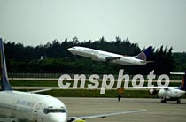 美國軍用偵察機(jī)的機(jī)組人員十二日清晨搭乘美國專機(jī),從中國海南省?谑忻捞m機(jī)場(chǎng)起飛離境。中新社記者 賈國榮 攝