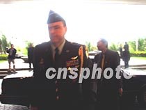 美國駐華使館武官席樂高準(zhǔn)將十二日凌晨秘密離開?谖娜A大酒店,送別美方機(jī)組人員后又回到酒店。中新社記者 莫成雄 攝