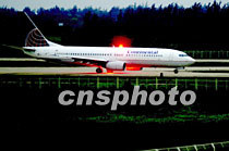 一架美國租用的客機十二日凌晨六時許降落在中國海南省海口市美蘭機場,前來接收美國軍用偵察機的機組人員離境。中新社記者 賈國榮 攝