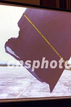 外交部十九日在北京展示美軍偵察機(jī)撞機(jī)受損機(jī)翼的圖片。中新社記者 滿會(huì)喬 攝