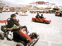 圖:布達(dá)拉宮前的廣場成為人們游樂的場所 2001年5月9日 19:55 ![]() 西藏拉薩市布達(dá)拉宮前的廣場,成為休假日人們游樂的場所。兩位藏族兒童假日在廣場上開著小卡丁車,玩得十分高興。中新社圖 吳新華 攝