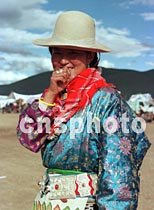 圖:藏族女青年參加物資交流會