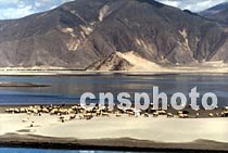 雅魯藏布江畔的羊群。中新社記者 賈國(guó)榮 攝