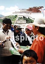 藏民在拉薩布達拉宮前的廣場上購買體育彩票。中新社記者 宋吉河 攝