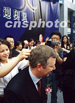 “夏士蓮黑發(fā)迎奧運”活動18日在上海舉行啟程儀式,該活動征集全國各地自愿者的頭發(fā)編成五環(huán)標志,以表達中國人的奧運心。活動主辦方之一中英合資聯(lián)合利華公司的外方代表為中國申奧當眾剪發(fā)捐獻。中新社圖 姜煜 攝