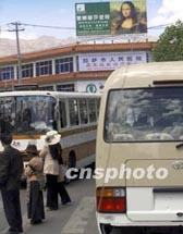 拉薩街頭的現(xiàn)代氣息日漸濃厚,達(dá)芬奇名畫中帶著神秘微笑的蒙娜麗莎,被印制在陶瓷制品上,豎立的街頭。中新社記者 滿會(huì)喬 攝
