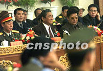 中國紀念西藏和平解放五十周年座談會五月二十三日在拉薩舉行,全國人大常委會副委員長帕巴拉·格列朗杰(右二)、西藏自治區(qū)人大主任熱地(右三)等出席座談會。中新社記者 滿會喬 攝