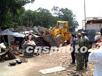 在珠海的一些部隊營區(qū)附近有不少“三無”人員搭建了違章建筑,種菜養(yǎng)豬,嚴(yán)重地污染了周邊的環(huán)境。珠海市有關(guān)部門二十四日采取聯(lián)合行動,拆除了唐家、炮臺山、駐澳部隊珠海港周邊的違章建筑,并將在這些地方進(jìn)行綠化。中新社圖 冒韙、石頭 攝