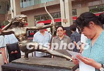 具有申奧精神的九十九件體育雕塑作品周日仍在北京王府井大街向市民及旅游者展出,游人還為作品打分評比。這些作品還將分布在北京主要社區(qū)展示。中新社記者 王麗南 攝