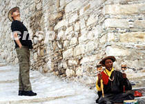 位于拉薩市郊的哲蚌寺迎來(lái)眾多的游客,一位外國(guó)游客和一位轉(zhuǎn)經(jīng)的藏民各自沉浸在自己關(guān)注的世界中。中新社記者 滿會(huì)喬 攝