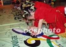 由廣州市婦聯(lián)主辦的“廣州兒童支持北京申奧”簽名活動(dòng),六月一日在廣州舉行,長(zhǎng)長(zhǎng)的巨幅橫額簽滿了數(shù)千小朋友的名字。中新社記者 羅仰明 攝