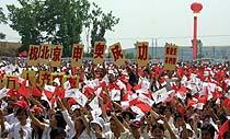 圖文:西安萬名學(xué)子世紀(jì)老人共祝北京申奧成功 2001年6月6日 09:34 ![]() 6月5日上午,民辦高校西安翻譯學(xué)院二萬二千多名學(xué)生舉行規(guī)模盛大的歌舞表演,與“北京——莫斯科申奧萬里行”車隊(duì)一起聯(lián)歡,共同為北京申奧吶喊助威。魏孝明 攝 ![]() 西安“世紀(jì)老人”王耀東是中國百年體育發(fā)展史的參與者和見證人。6月5日下午,鳳凰衛(wèi)視和“萬里行”隨行記者在家里采訪了王老。他向記者們講述了當(dāng)年參加遠(yuǎn)東運(yùn)動(dòng)會(huì)的情況,并表示盼望奧運(yùn)會(huì)能早日在中國舉辦。魏孝明 攝