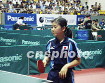 2001中國(guó)乒乓球大獎(jiǎng)賽六月六日至九日在?谂e行。本次大獎(jiǎng)賽年齡最小的運(yùn)動(dòng)員是日本運(yùn)動(dòng)員福原愛(ài),年僅十二歲。她在七日的第二輪比賽中以一比三負(fù)于中國(guó)的白楊。中新社圖 莫成雄 攝