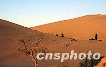 圖:夕陽(yáng)下的月牙泉景觀 2001年6月13日 09:13 ![]() 敦煌鳴沙山下月牙泉邊,流傳著一段美麗動(dòng)人的愛(ài)情故事:當(dāng)?shù)匾晃槐诋嫿硱?ài)上將軍的女兒,但婚事遭到將軍的阻撓,二位情人殉情后分別化作鳴沙山和月牙泉,山擁抱著泉,泉水源源流長(zhǎng)上千年。圖為夕陽(yáng)下的山泉景觀。中新社圖 魏孝明 攝