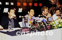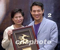 組圖:李連杰出席電影《猛龍戰(zhàn)警》亞洲區(qū)記者會 2001年07月07日 22:33 ![]() 國際武打影星李連杰7日在香港出席動作電影《猛龍戰(zhàn)警》亞洲區(qū)記者招待會!睹妄垜(zhàn)警》是他第三部荷李活制作的電影,該片香港區(qū)發(fā)行商特別在記者會上向李連杰致送紀念品。中新社傳真鄧慶樂攝 ![]() 荷李活電影《猛龍戰(zhàn)警》7日在香港舉行亞洲區(qū)記者招待會。影星李連杰、監(jiān)制及編劇洛比桑(右二)、及另一監(jiān)制史提芬查士文(左一)出席在記者會上。中新社傳真鄧慶樂攝