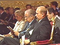 快訊:國際奧委會第112次會議在莫斯科開幕 2001年07月12日 23:24 ![]() 開幕式現(xiàn)場 ![]() 俄羅斯總統(tǒng)普京與國際奧委會主席薩馬蘭奇出席國際奧委會第112次全會開幕式
