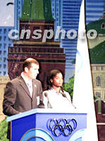 組圖:巴黎代表團(tuán)進(jìn)行申奧陳述 2001年07月13日 19:30 ![]() 7月13日,國際奧委會(huì)112次會(huì)議在莫斯科世界貿(mào)易中心舉行會(huì)議,表決2008年奧運(yùn)會(huì)舉辦城市。圖為巴黎代表團(tuán)齊達(dá)內(nèi)第一個(gè)陳述。中新社記者 王瑤 攝 ![]() 圖為巴黎代表團(tuán)陳述后退場時(shí),法國總理若斯潘接受記者采訪。中新社記者 王瑤 攝